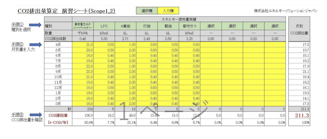 演習シートの使い方 演習シートでCO2を計算してみましょう!